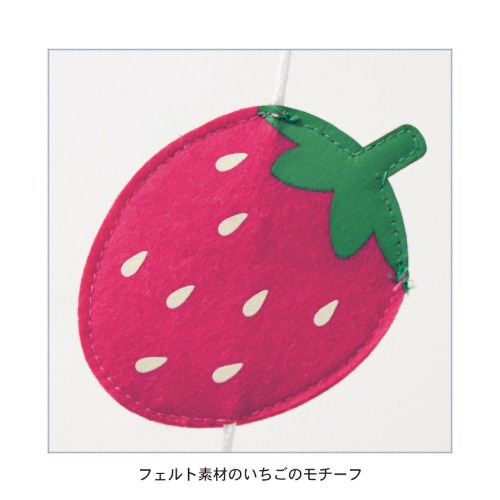 ぽんぽんと一緒に、フェルト素材のいちごモチーフ、