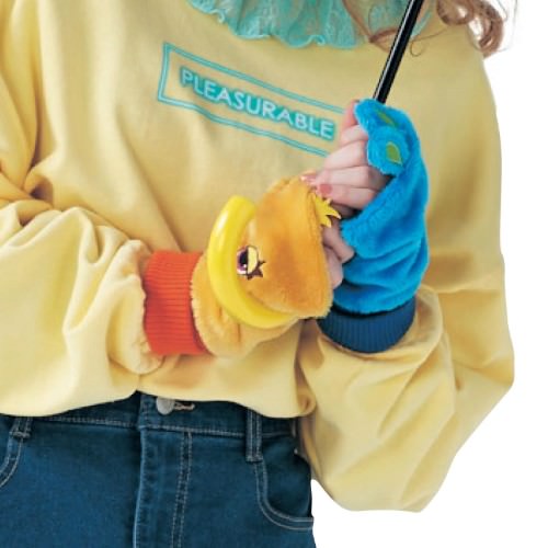 右手は、ふわふわの毛並みがキュートなアヒルのぬいぐるみ「ダッキー」デザイン、左手は鮮やかな青と緑のモフモフの毛が特徴のうさぎのぬいぐるみ「バニー」デザインになっています!
