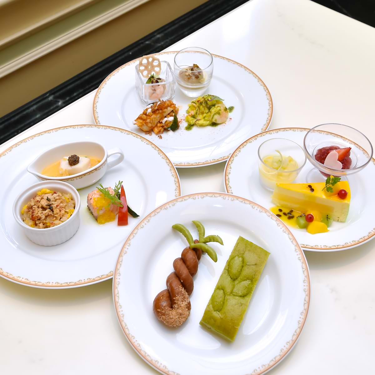 ヴィクトリア朝様式の美しい庭園に面した広い店内で、夏らしい彩りの様々な料理を楽しむことができます☆