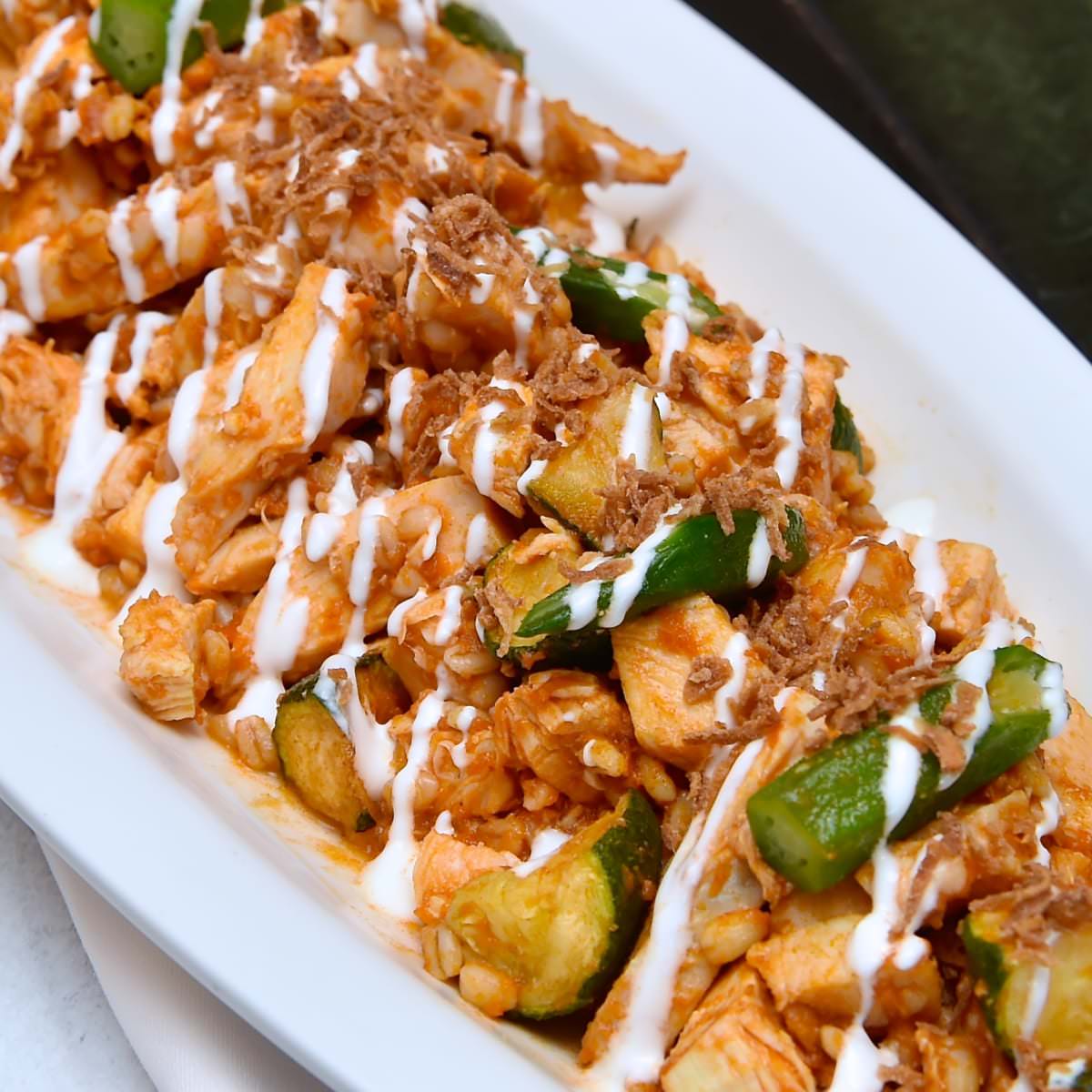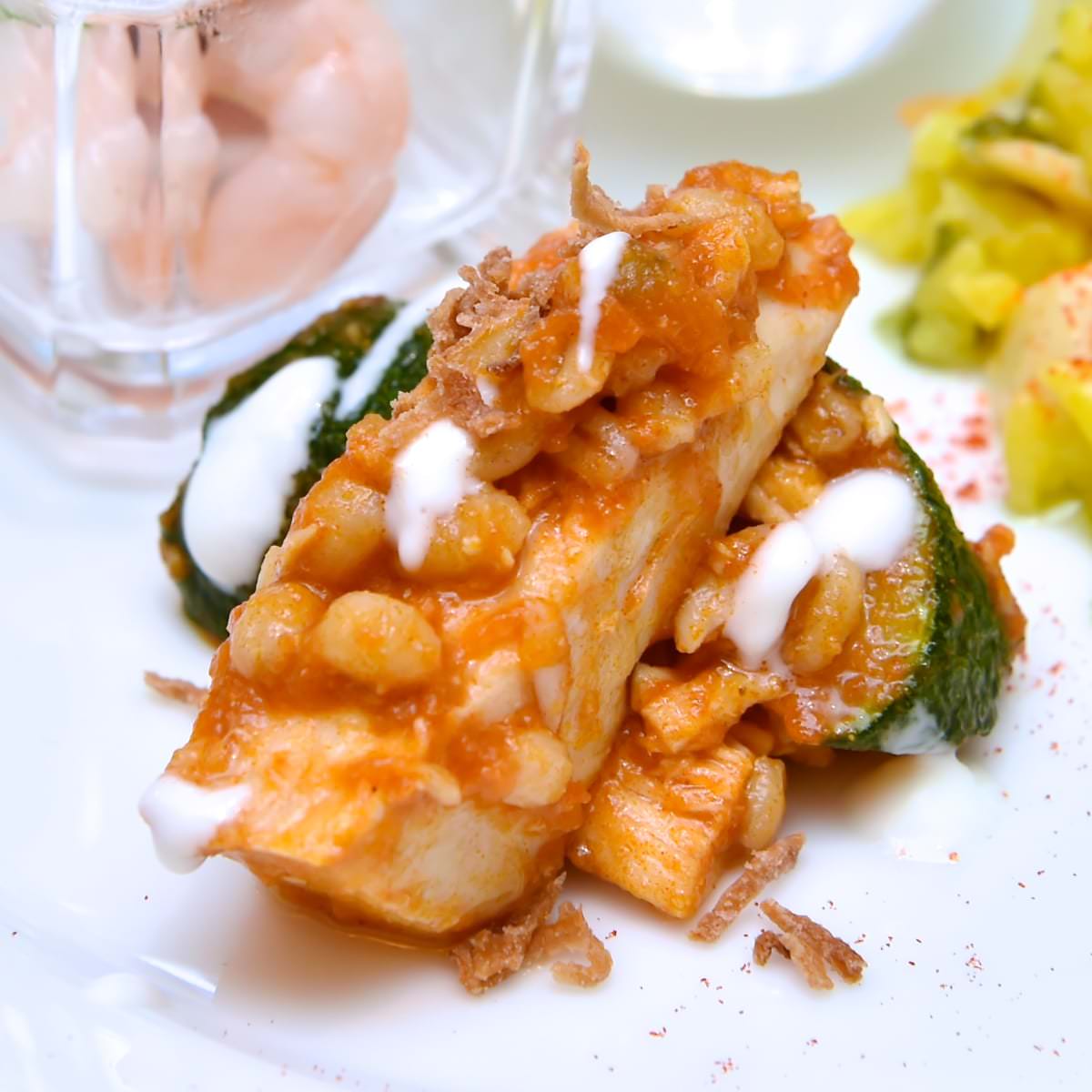 しっとりと仕上げた鶏胸肉をズッキーニと一緒にいただく冷たいお料理。