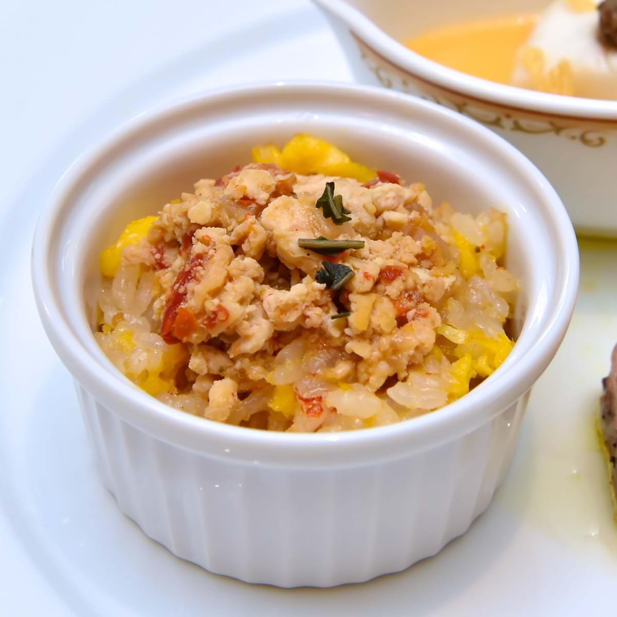 ほんのりカレー風味のトマトソースで和え、スパイシーさを感じる仕上がりになっています。