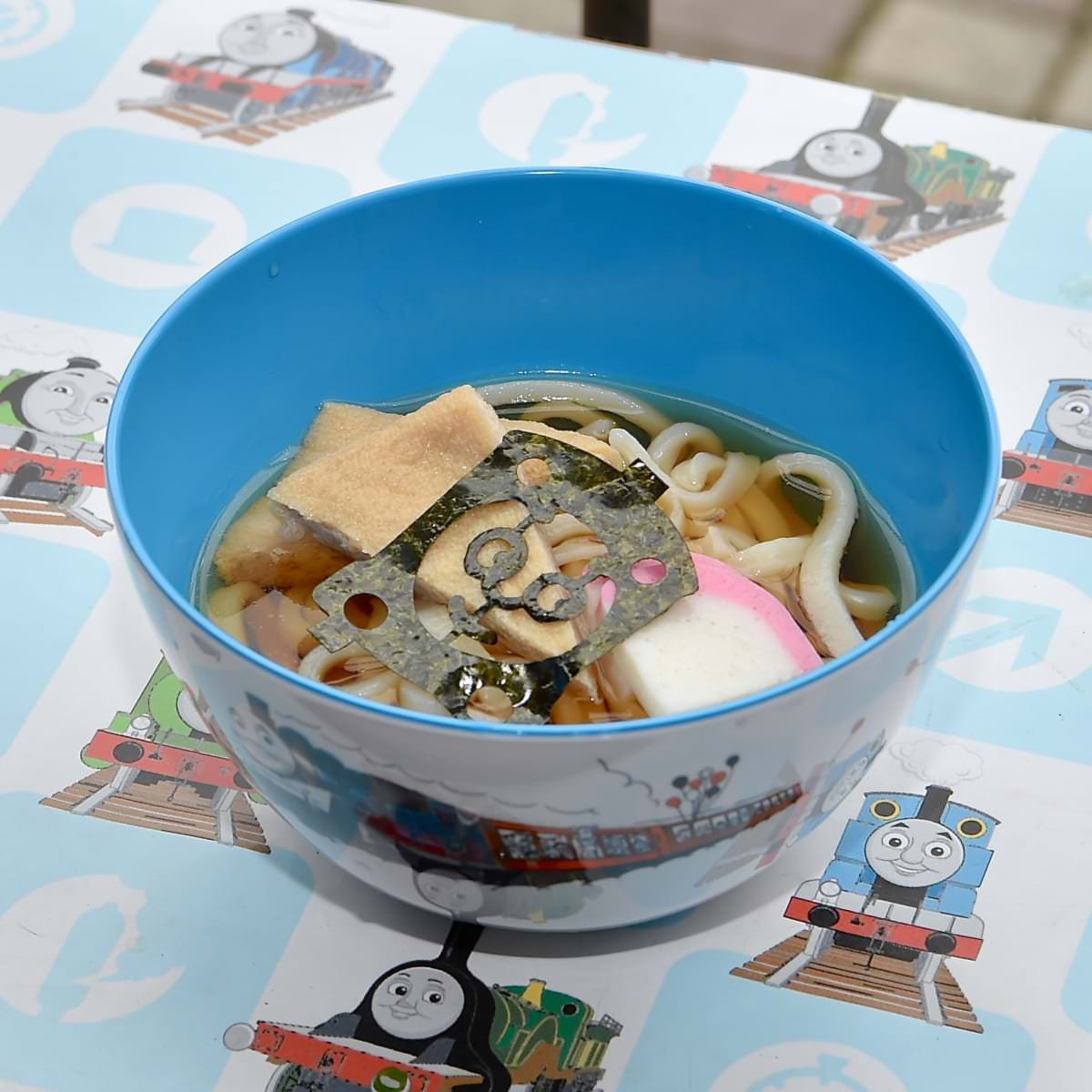 千頭駅では、オリジナルのどんぶりがもらえるトーマスうどんも提供されています。
