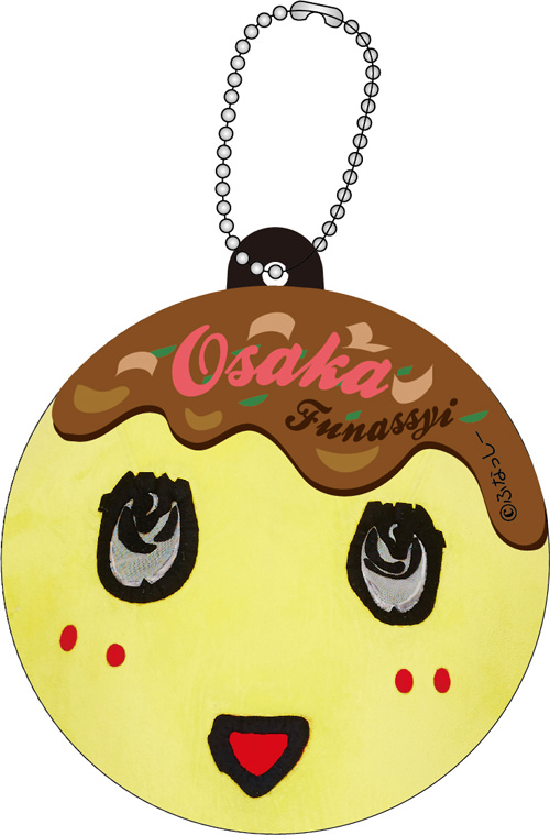 まんまるフォルムのキーホルダーには、たこ焼きに扮する「ふなっしー」がデザインされています。