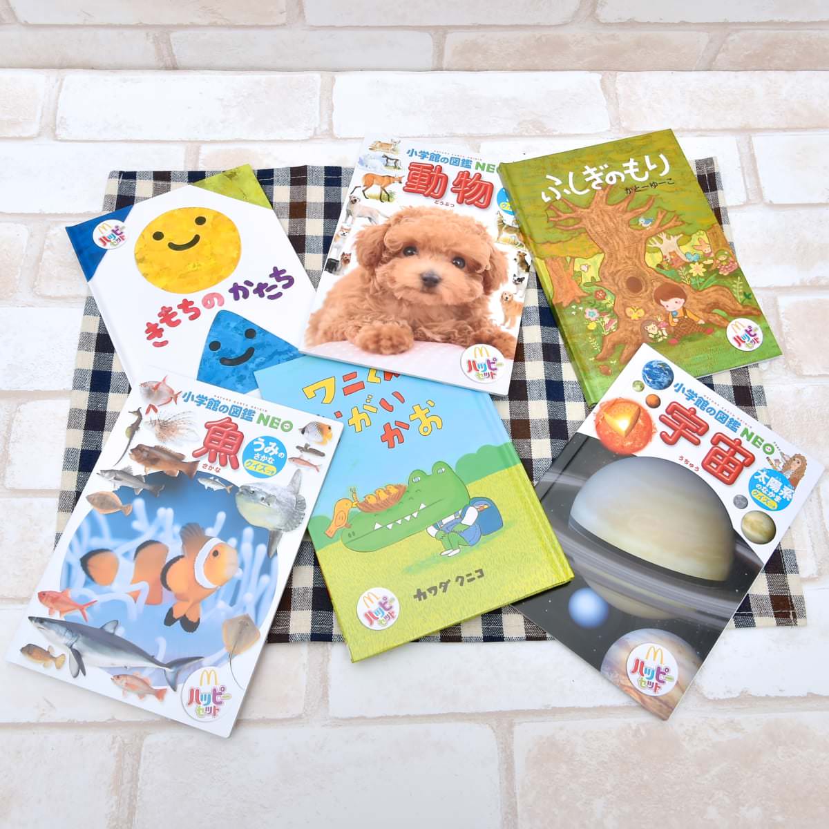 今回、初登場から1 周年の特別キャンペーンとして、ハッピーセットを購入するとさらに追加で、これまでに登場した「絵本」か「ミニ図鑑」を 1 冊無料でもらうことができます!
