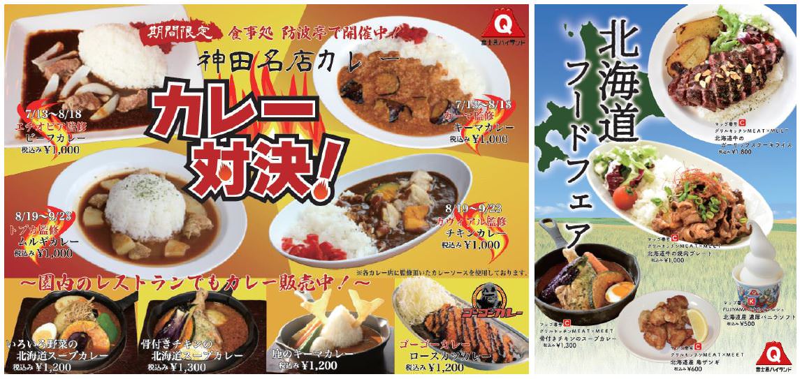 同パークでは、神田名店カレーをはじめ様々な種類のカレーを楽しめる「富士急カレー対決」と北海道の美味しい食を集めた「北海道フードフェア」を開催中!