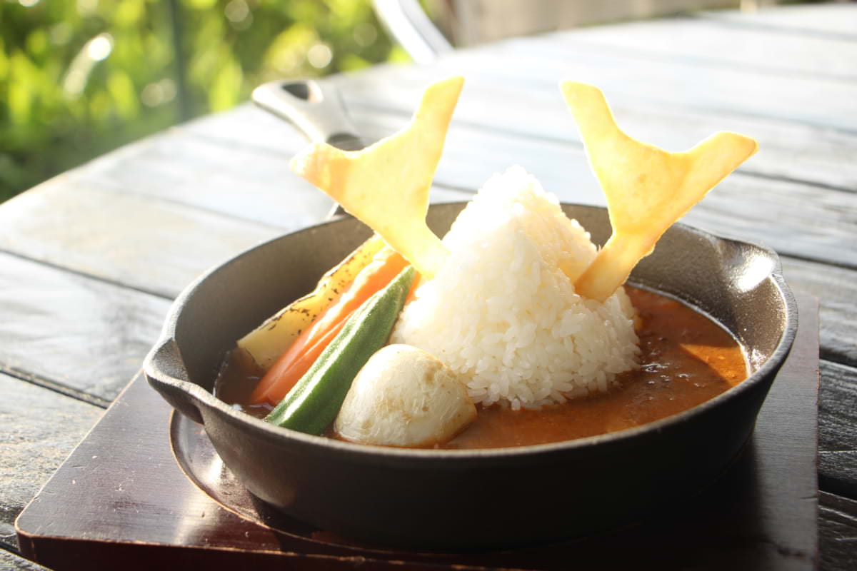 北海道のご当地グルメ「スープカレー」がMEAT×MEET風にアレンジされています。