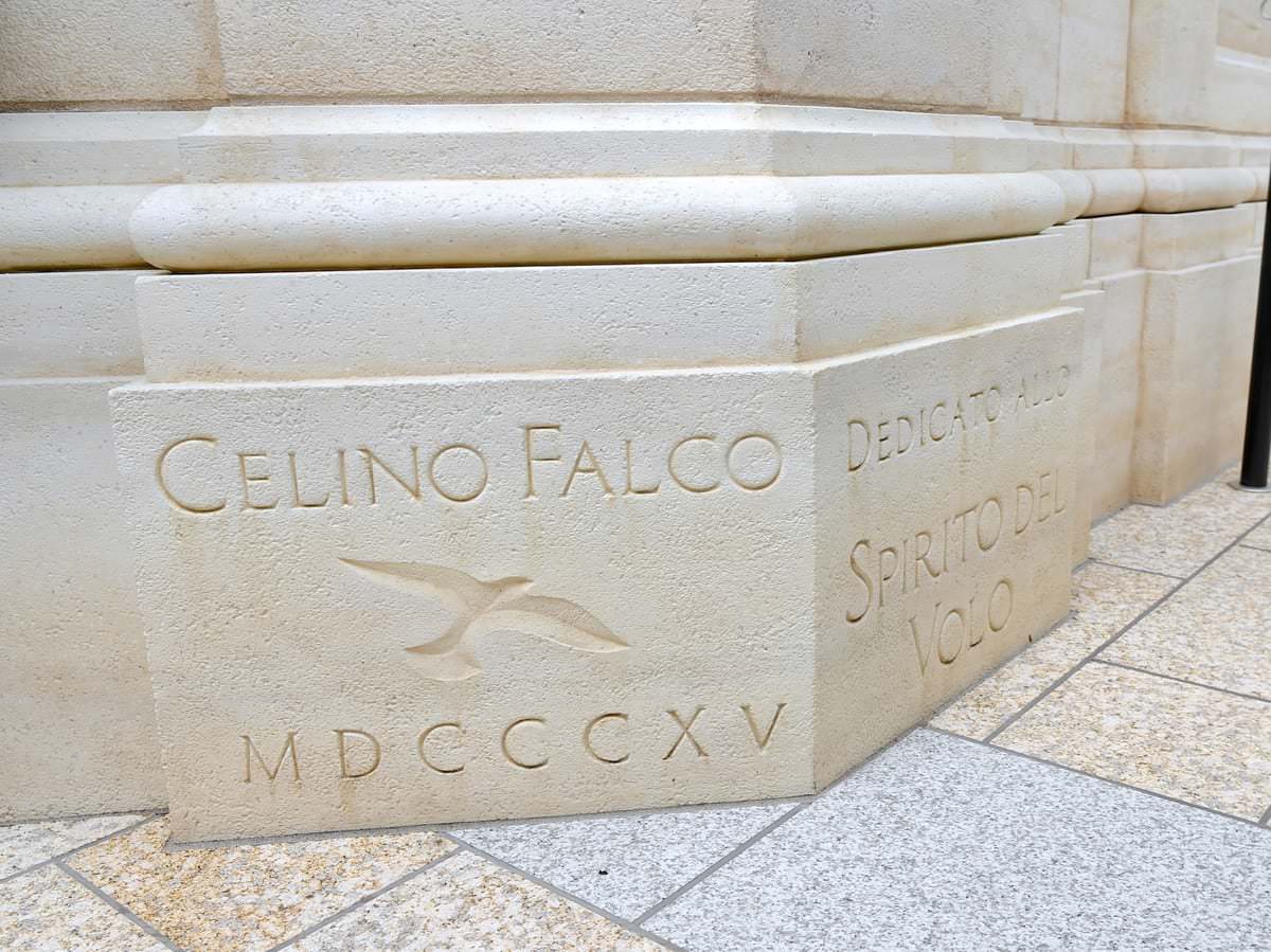 「イカロス」のレリーフの近くには、「カメリア・ファルコ」の父でこの「ファンタスティック・フライト・ミュージアム」の初代館長の「チェリーノ・ファルコ」の名前が刻まれています。