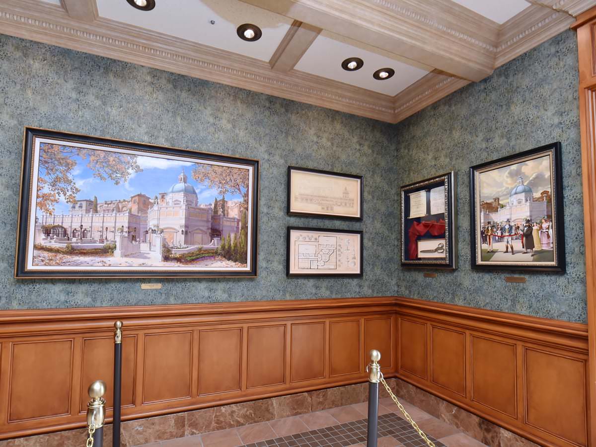この博物館の起工式やオープニングセレモニーの様子が描かれた絵画のほかセレモニーで使われたリボンやハサミ、