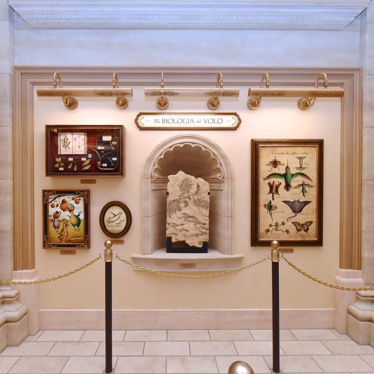 また世界の人々の飛行へのイマジネーションや願望、夢が描かれた8枚の大きな壁画や、4つのカテゴリー(歴史、生物学、考古学、技術)に分けて展示された常設コレクションを見ることができます。