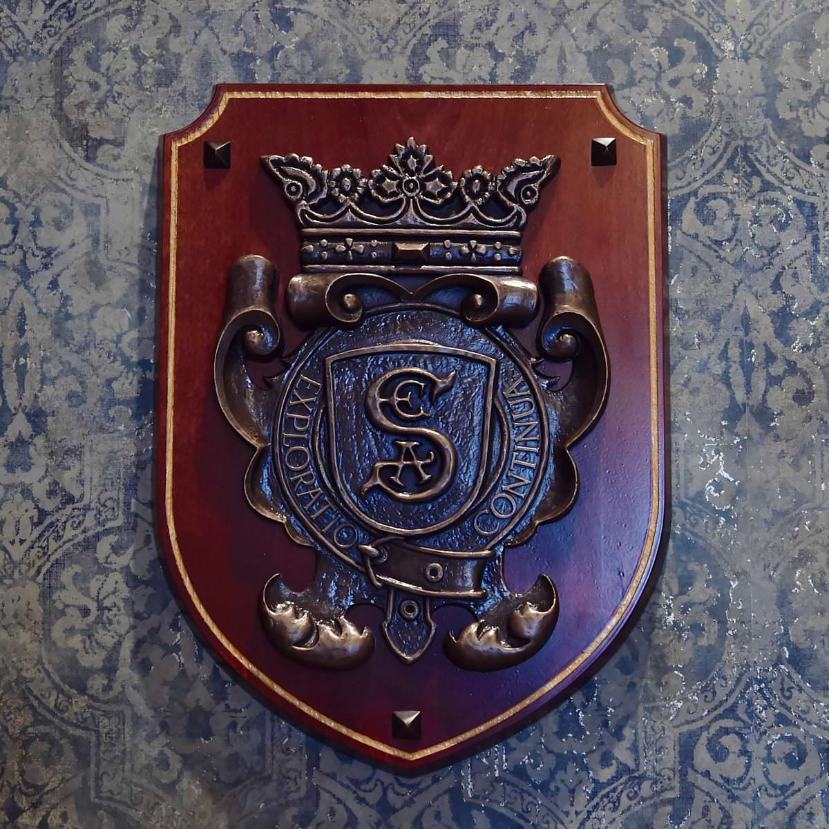 現在博物館を運営している探険家・冒険家学会(S.E.A.)の紋章が飾られています。