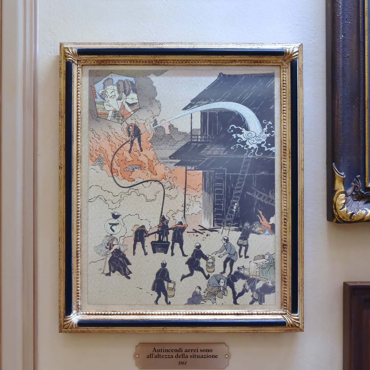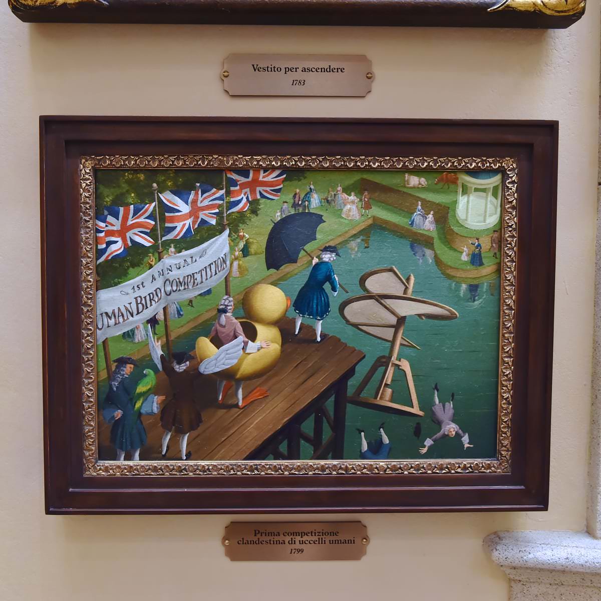 鳥のように空を飛ぶコンテストなど、様々な絵画作品が展示されています。