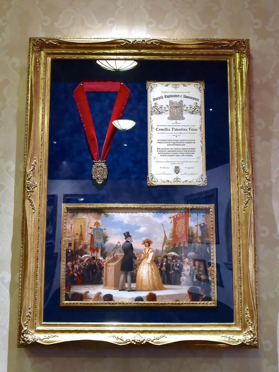 S.E.A.初の女性会員に認められた際の記念メダルなどが展示され、「カメリア」の人生を振り返ることができます。