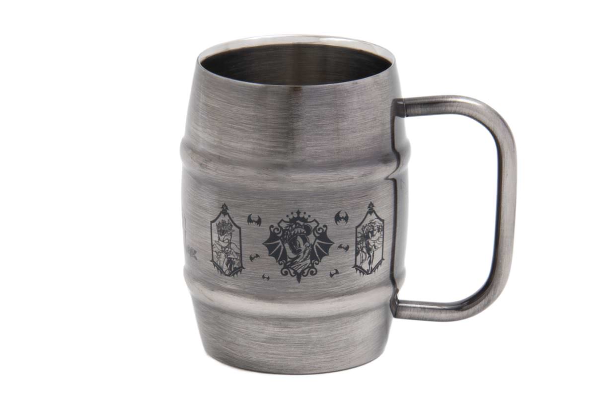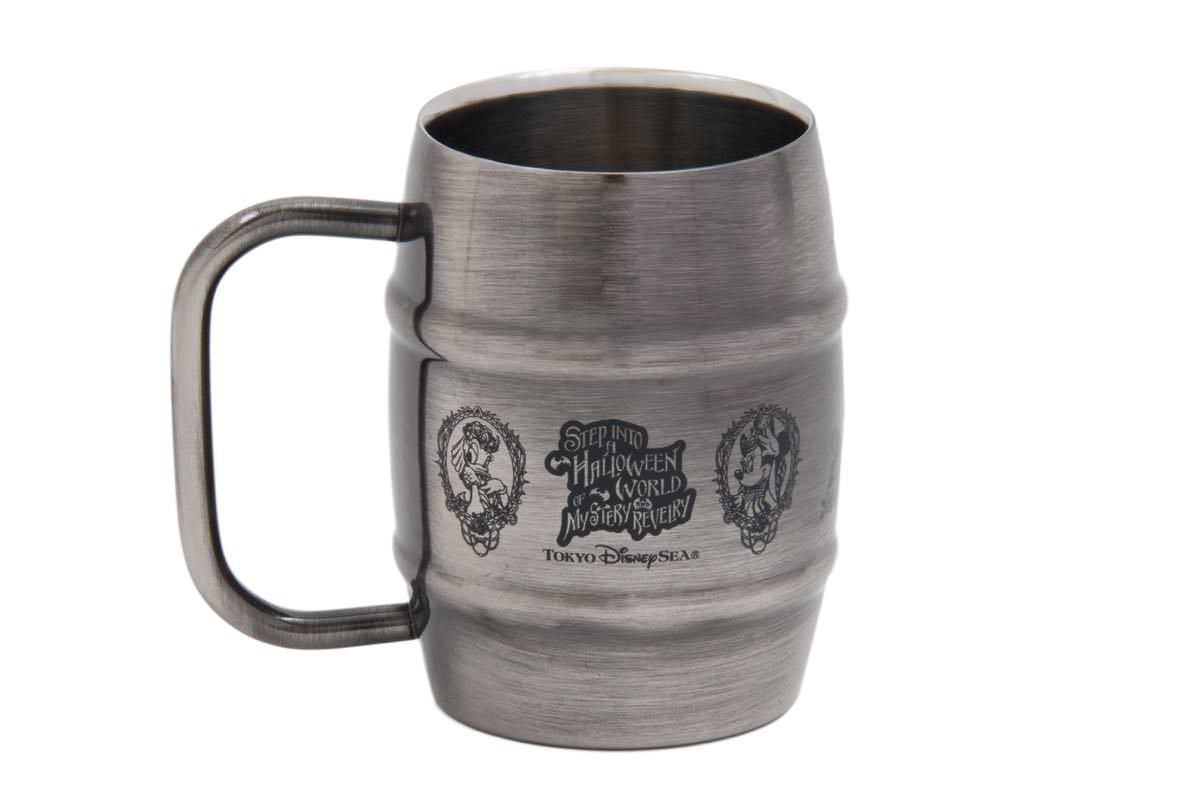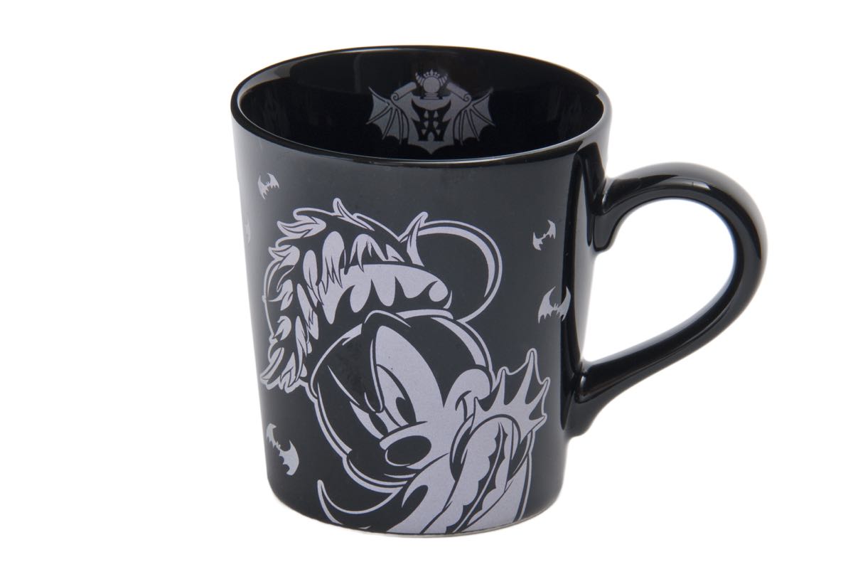 カップにはコウモリたちをバックにこちらを見つめる「ミッキーマウス」が大胆に落とし込まれています。