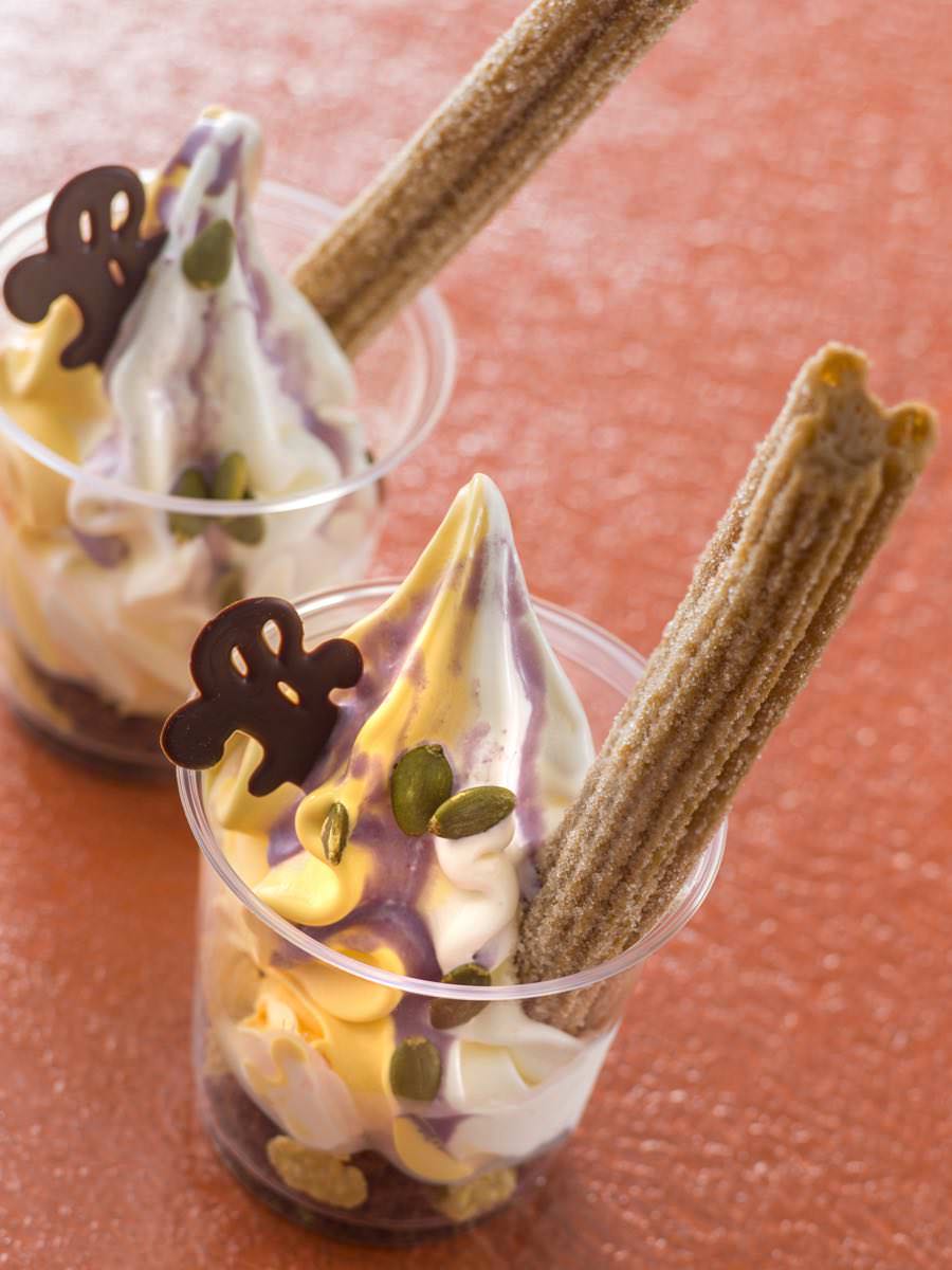 パークの定番メニュー「チュロス」もハロウィーンバージョンに大変身。