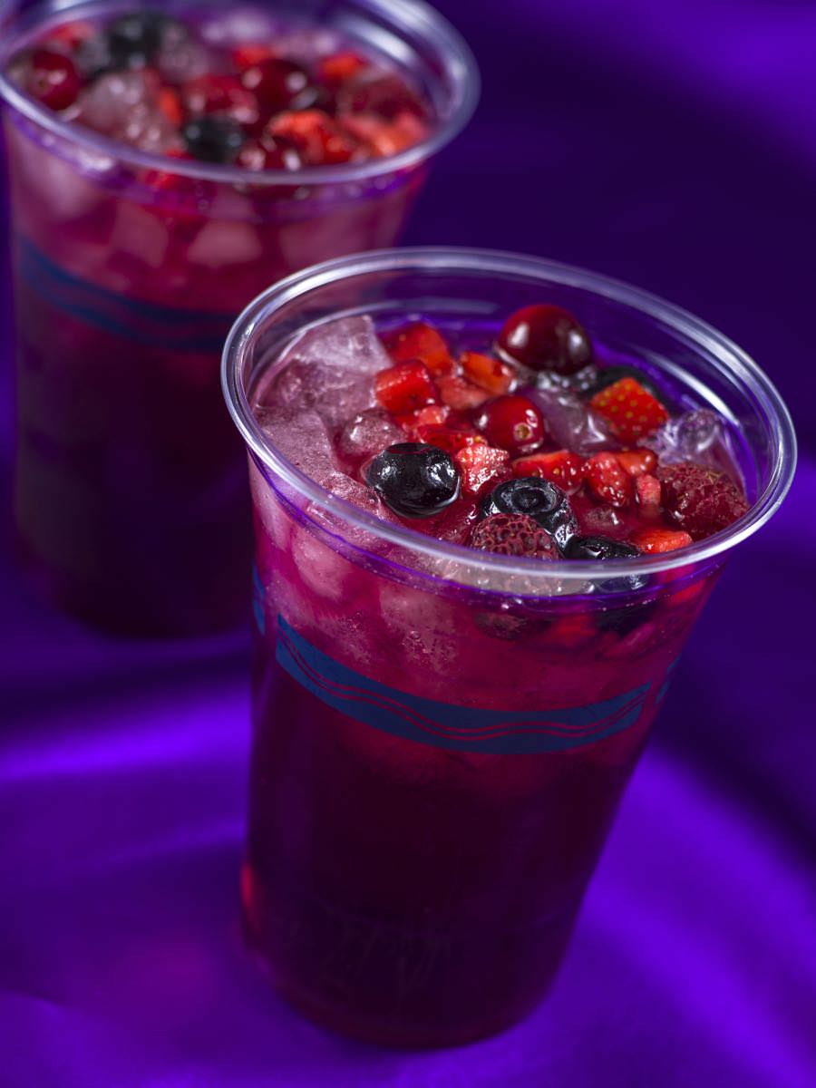 ミックスベ リーの果肉入りで、ほどよい酸味と甘みが爽やかな飲み心地です。