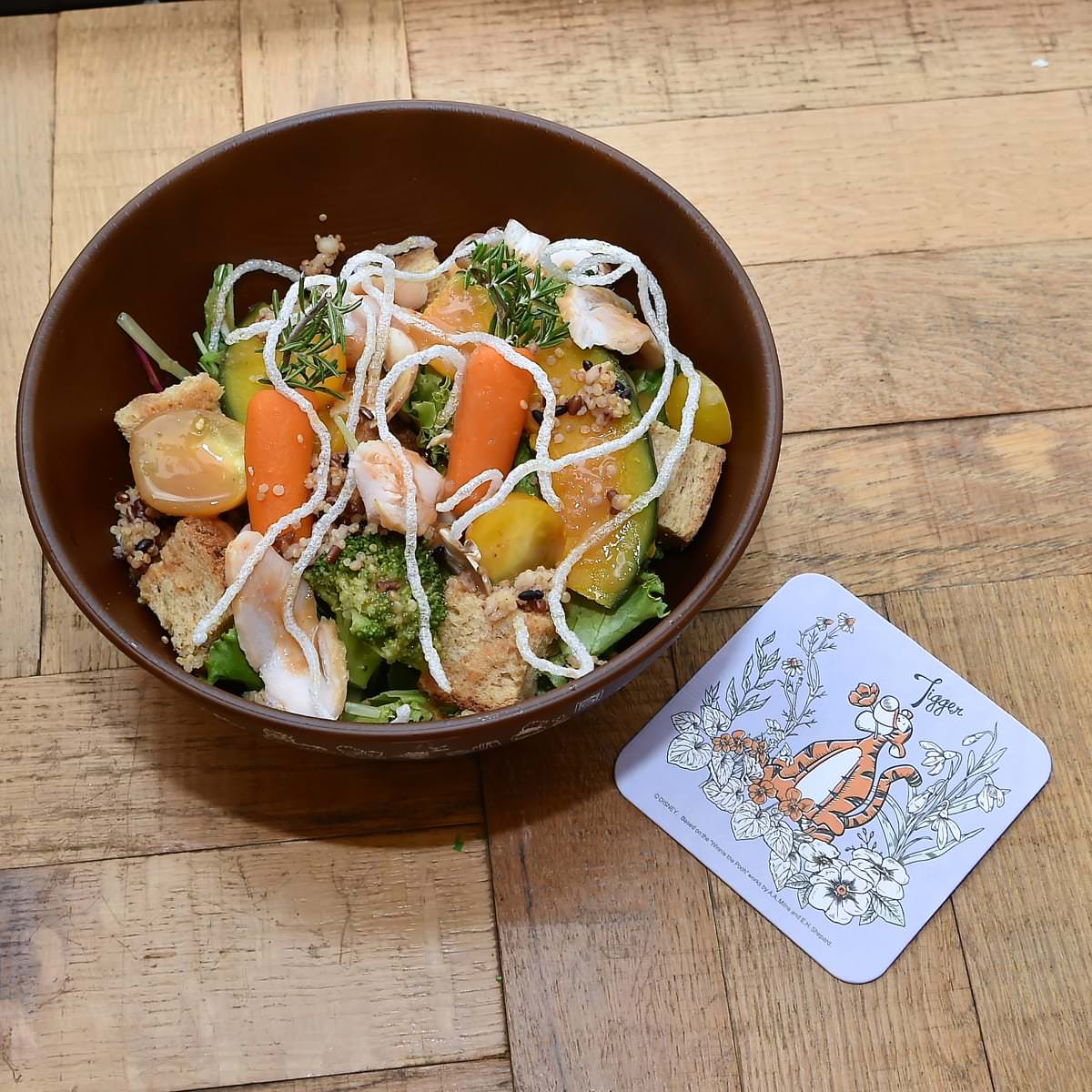 まるで野菜畑のようなサラダに、ティガーのしっぽをイメージしたトッピング☆