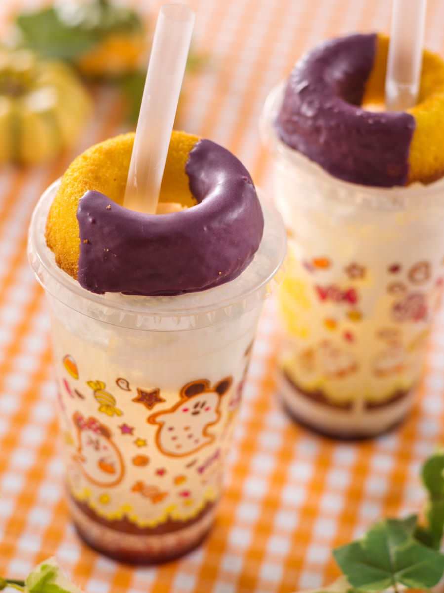 ドリンクの上には、紫色のチョコレートでコーティングされたパンプキン味のドーナツもついた、見た目にもかわいいスペシャルメニューです。
