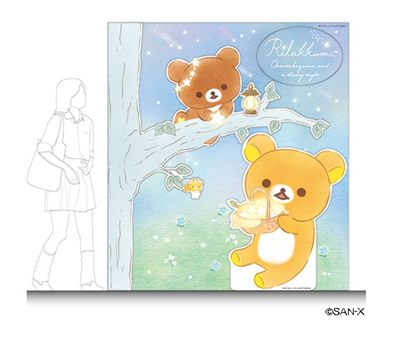 「チャイロイコグマと星降る夜」テーマのフォトスポットで、リラックマたちのイラストと記念撮影ができます。