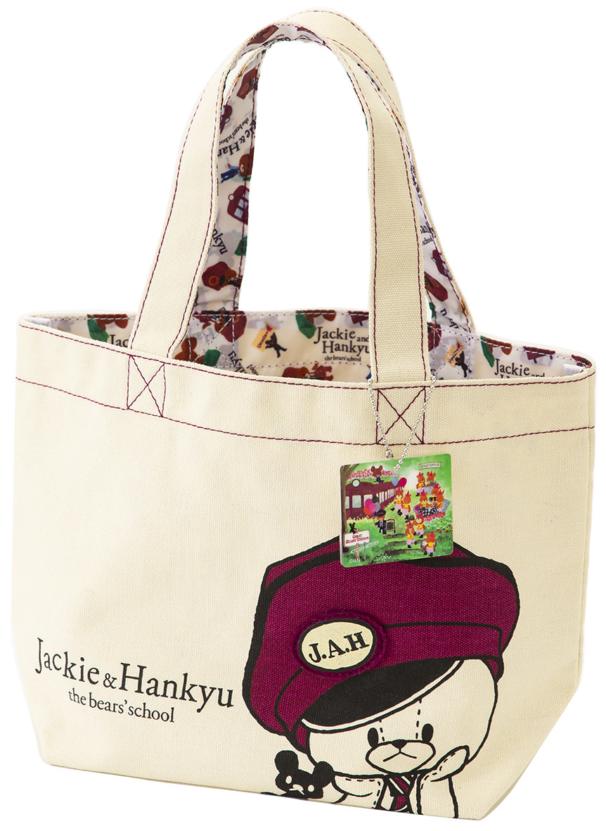 阪急マルーン色の駅長さん帽子が印象的な「ジャッキー」デザインのランチミニトート。