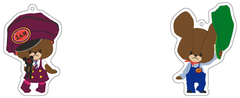 駅長さん「ジャッキー」のカラビナマスコットとアクリルキーホルダー。