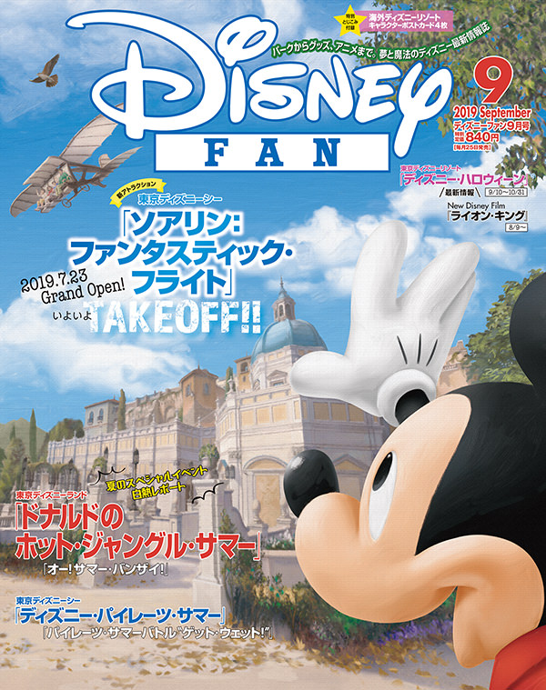 ディズニー月刊情報誌「ディズニーファン」2019年9月号は、全国の書店、Amazon、楽天市場などで2019年7月25日より発売です。