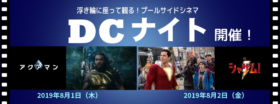 今回、DC映画最新作『アクアマン』と『シャザム!』のリリースを記念し、2019年8月1日(木)、2日(金)の 2日間限定で、浮き輪に座ってくつろぎながら、プールサイドで映画を堪能できる「DC ナイト in Ukiwa de Cinema」が夜の東京サマーランドで開催されます!