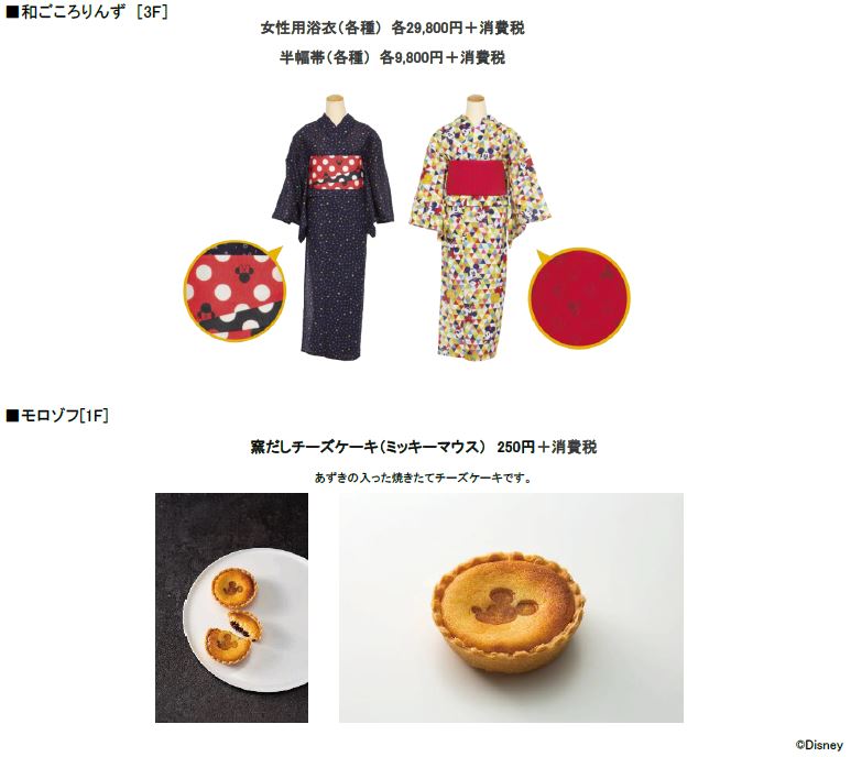 イベントの開催に合わせ、ららぽーと EXPOCITYの着物専門店「和ごころりんず」では「ミッキーマウス」デザインの浴衣や帯を販売、「モロゾフ」では店頭のオーブンで焼き上げる窯だしチーズケーキに「ミッキーマウス」の焼き印を押した特別商品を販売するなど、一部テナントでも「ミッキーマウス」関連商品を販売。