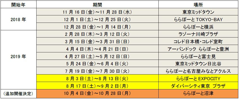 ららぽーと沼津での追加開催概要