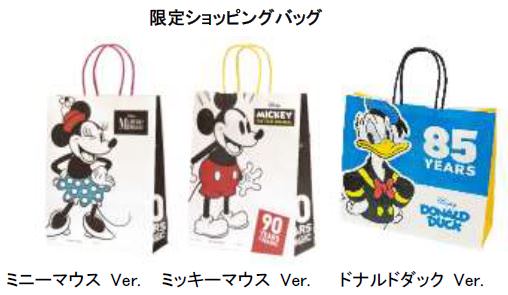 ポップアップショップにて、2,000円(税込)以上のお買い物をすると各施設先着で、「ミッキーマウス」と「ミニーマウス」と「ドナルドダック」がデザインされた限定ショッピングバッグがもらえます!