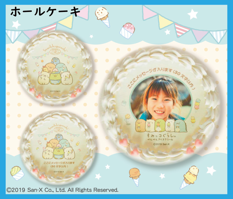 お誕生日パーティなどにぴったりのすみっコぐらしのホールケーキ。