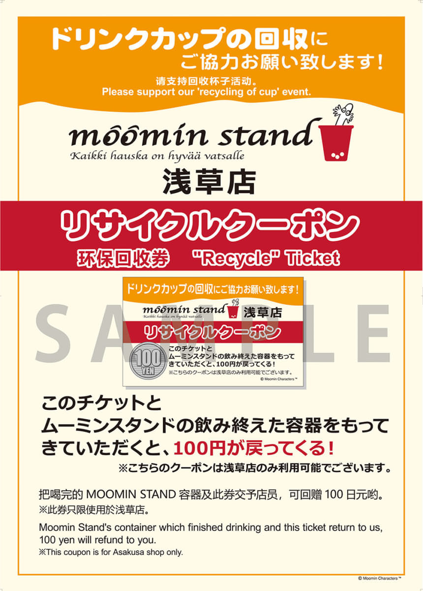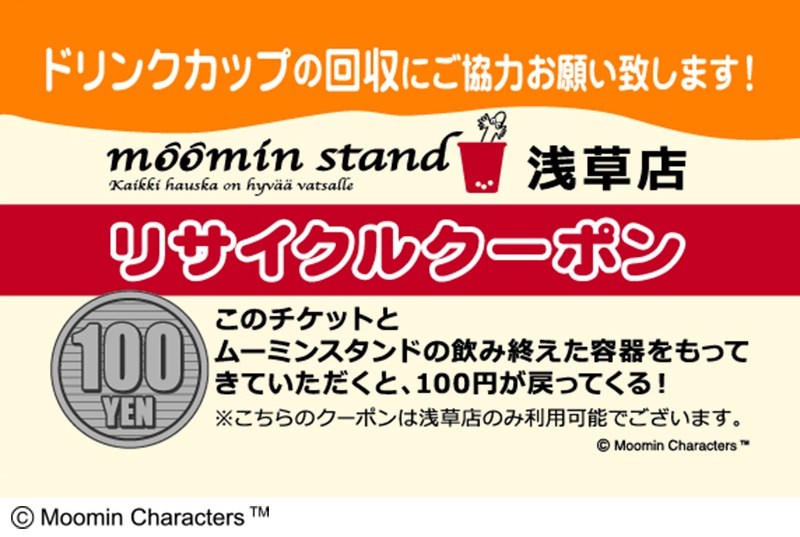 ムーミンスタンド浅草店では、ドリンクカップの回収を実施中!
