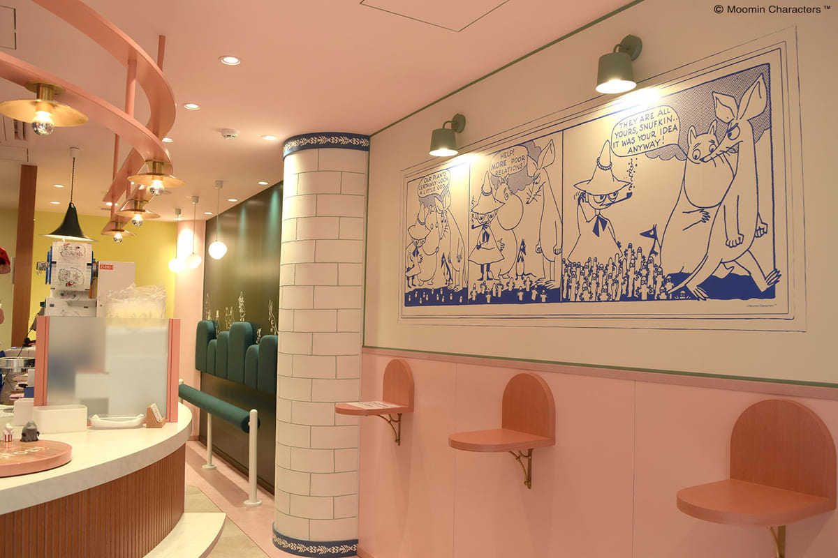 壁面にムーミンたちが描かれた店内は、あちこちがフォトスポット☆
