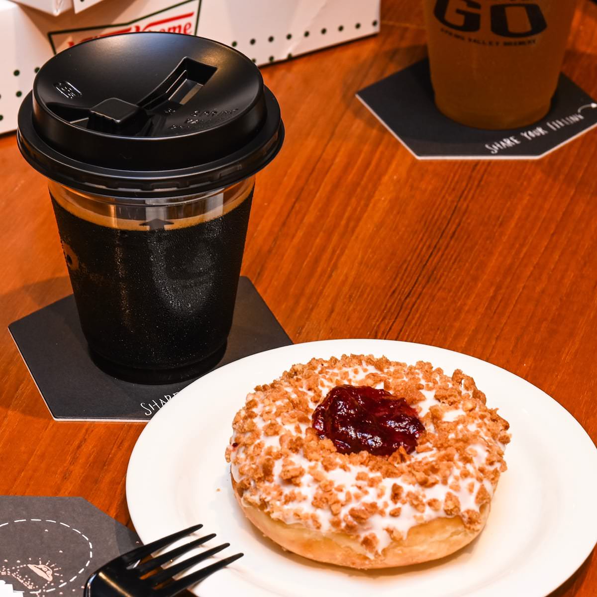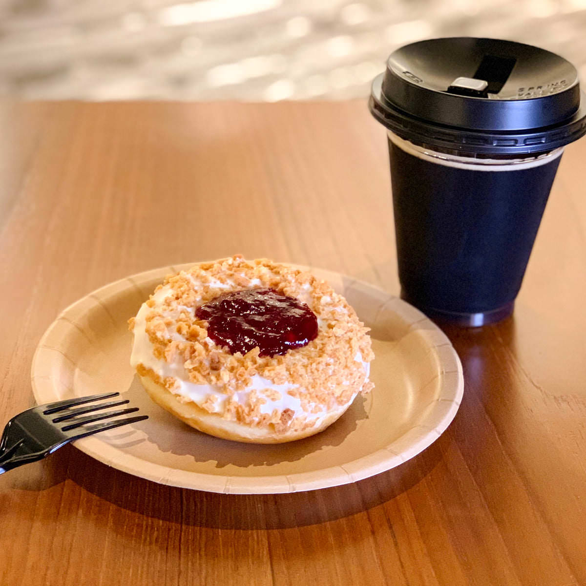 まるでパイのような雰囲気のドーナツ「アメリカン ベリー パイ 」と、アイスコーヒーのような軽やかな苦みがぴったりな“Afterdark”のペアリング。