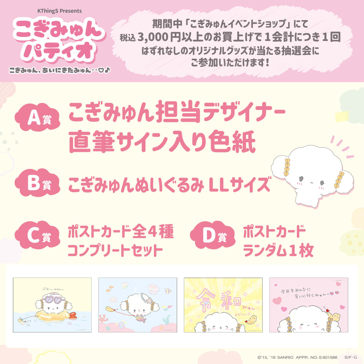 賞品には「こぎみゅん」担当デザイナーさんの直筆サイン入り色紙や「こぎみゅんぬいぐるみLLサイズ」などが登場です☆