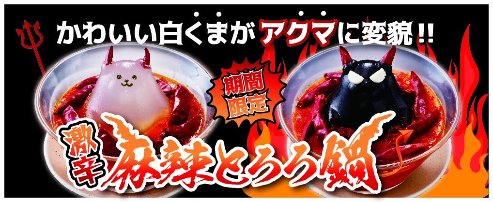 白くまをかたどったコラーゲン「白くまコラーゲン」を入れて完成する2019年の夏鍋は、麻辣、バジル、塩レモンと3種類の味がついたとろろの鍋で、「美味しい」「夏に食べ易い」と大好評!