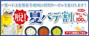 生ビールが何杯飲んでも100円!「脱!夏バテ割」
