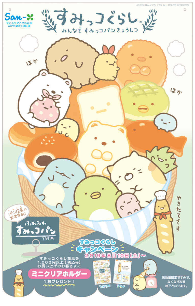 すみっコぐらし「すみっコパンきょうしつ」テーマ新商品発売記念・店頭キャンペーンは、2019年8月10日(土)から、キャンペーン対象店舗にて開催されます。
