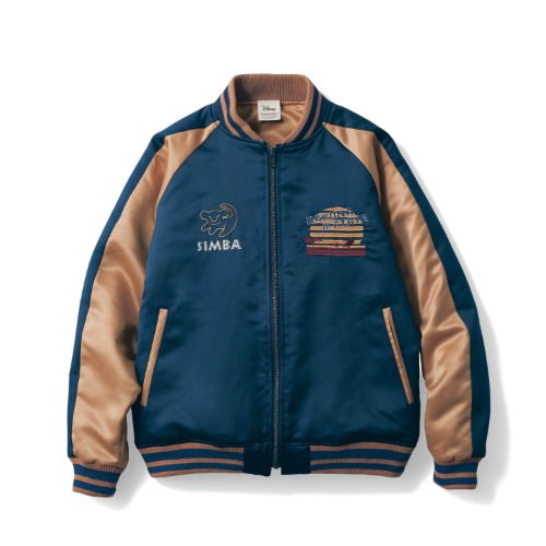 色鮮やかな刺繍にアフリカの力強さを感じるカッコ良いテイストの『ライオン・キング』デザインのスカジャン。
