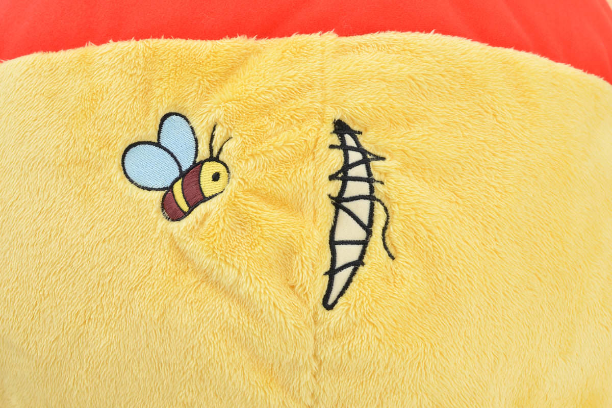 お尻の縫い目や、ハチは刺繍で立体的に施されています。