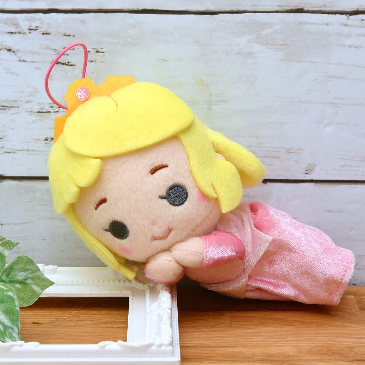 『眠れる森の美女』のディズニープリンセス「オーロラ姫」のぬいぐるみ。