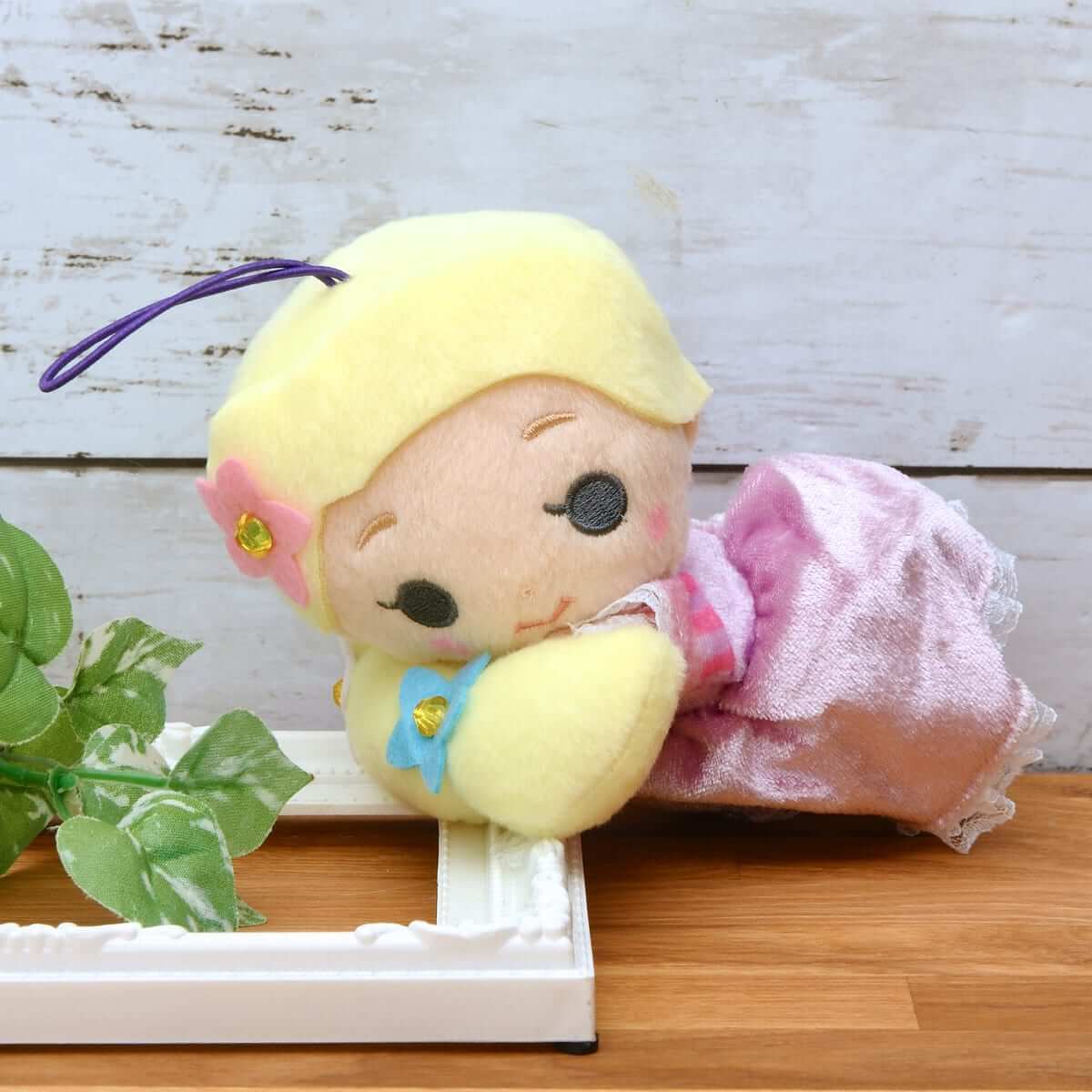 『塔の上のラプンツェル』のディズニープリンセス「ラプンツェル」のぬいぐるみ。