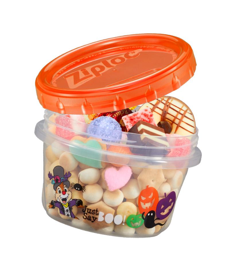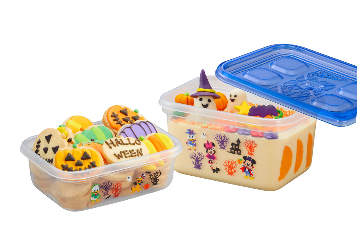 「ミッキーマウス」と仲間たちがハロウィーンテイストで描かれた「ジップロック コンテナー」