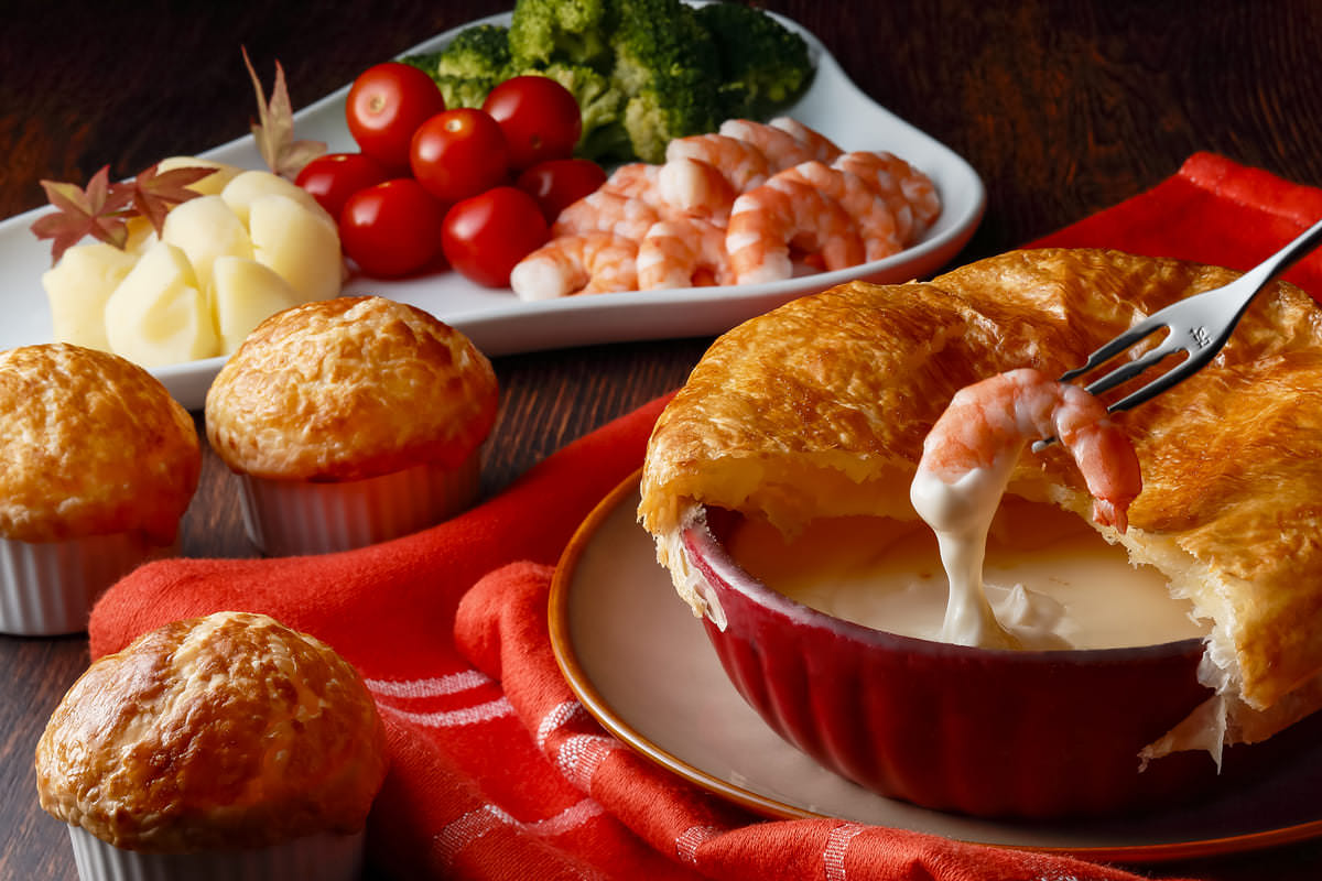 チーズクリームパスタ/くんちゃまベーコンのクアトロフォルマッジピッツァ/パンプキンスープ/チーズタッカルビ/チーズフォンデュのパイ包み焼き/むらさき芋のロースト キッシュ仕立て/かぼちゃと栗のクリーミーグラタン/秋の味覚とカマンベールチーズの生ハム巻き/クリームチーズとかぼちゃのタルト/チーズバー など