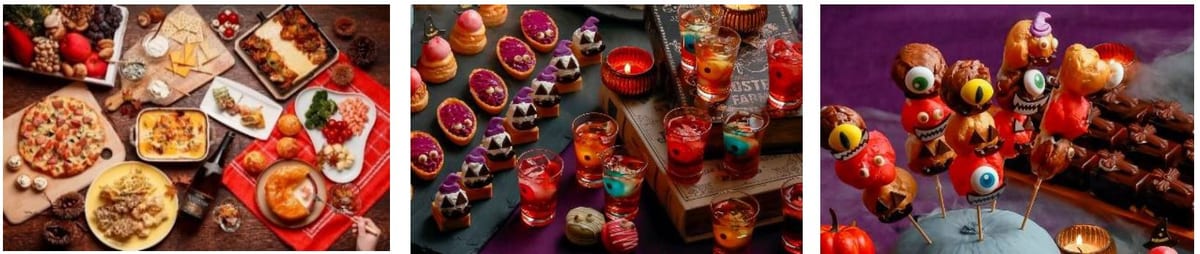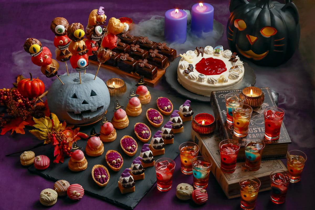 ミイラマカロン/目玉ゼリー/ドラキュラのムース/モンスタースイートポテト/魔女のアップルパイ/蜘蛛のア・ラ・モード/ゴーストのタルト など