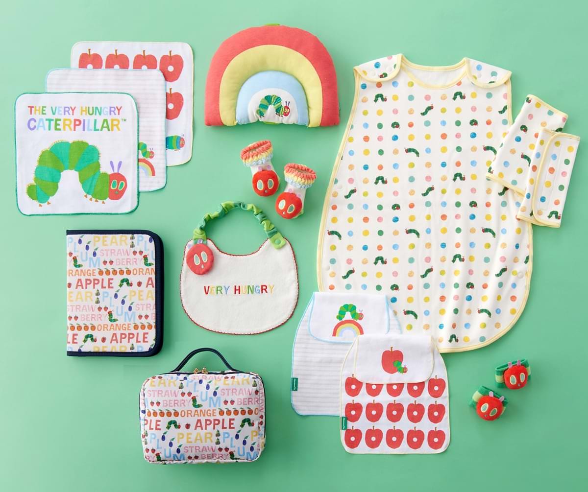 初のコラボレーションとなる今回は、色彩豊かで可愛らしい『はらぺこあおむし』の特徴を活かした「ベビーグッズ」が多数展開されます☆