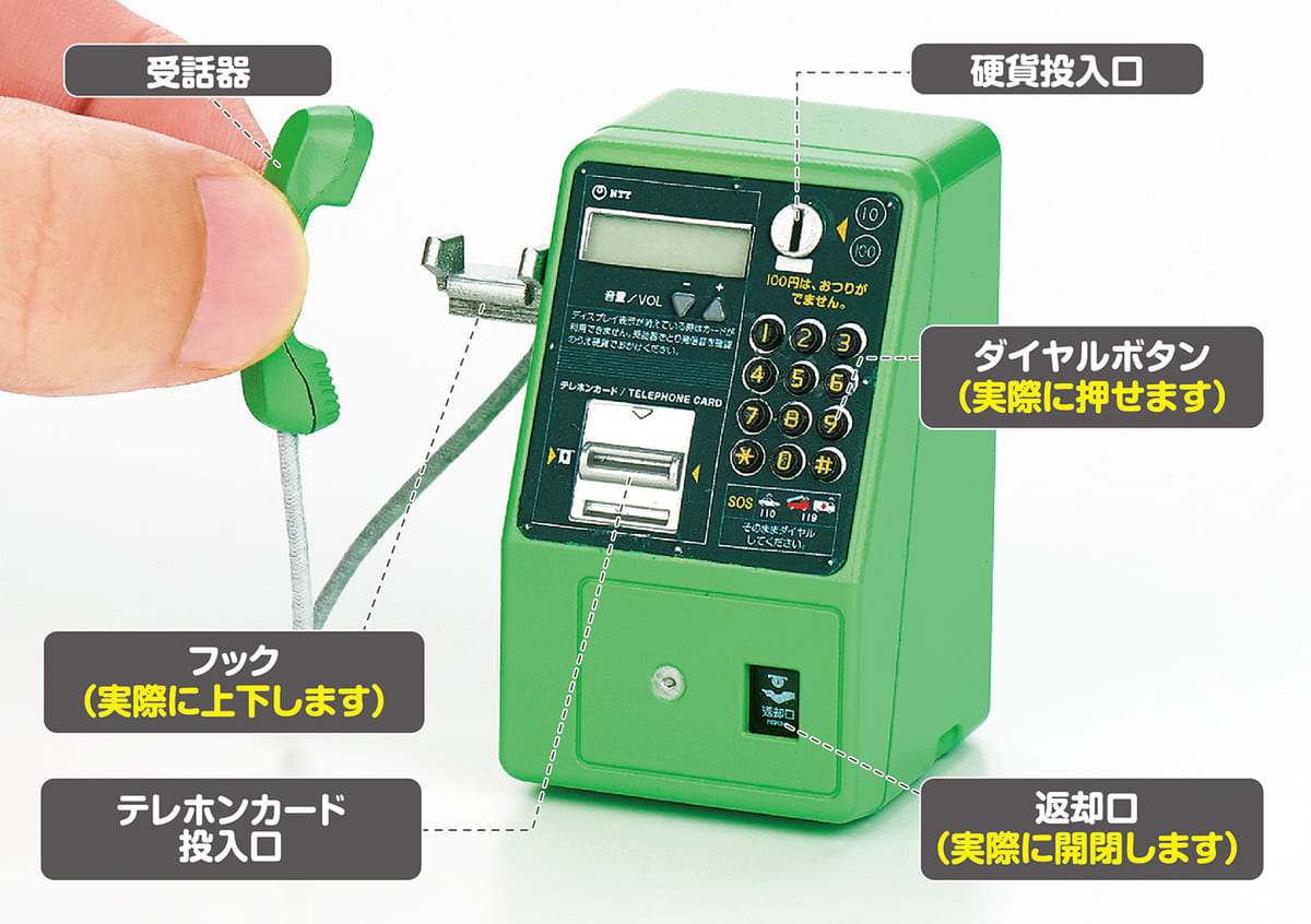 公衆電話のかけ方を疑似体験!?精巧ギミック付きフィギュア