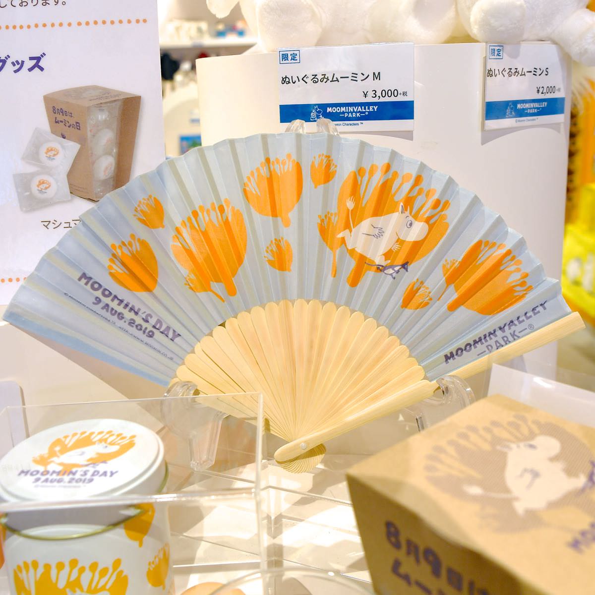 ムーミンバレーパーク内で5,000円(税込)以上グッズを購入すると、「ムーミンの日」オリジナルデザインの扇子をプレゼント。