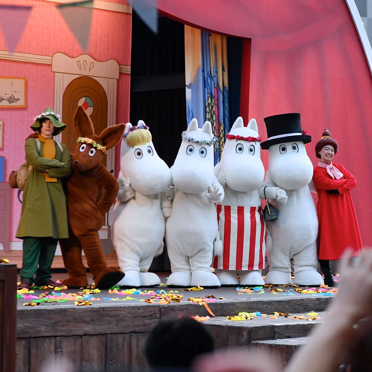 「ムーミン一家」と仲間たちの楽しいライブショーが行われている「エンマの劇場」では、「ムーミンの日」当日18時より、パーティが大好きな「ムーミン」たちのオリジナルプログラムが開催されました!