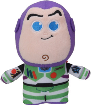 にこっと微笑んでいる「バズ・ライトイヤー」のぬいぐるみ。