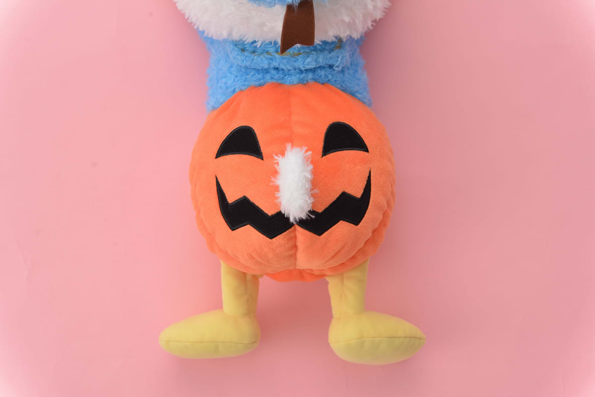 パンプキンパンツを履いた「ドナルド」のぬいぐるみは、ハロウィーンシーズンにぴったり!